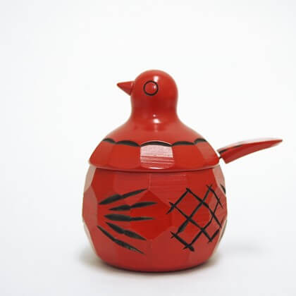 栄屋工芸店の「鳩の砂糖壺」と「鳩の楊枝入れ」も、開店当初から店頭に並ぶ商品の一つ。元々は、農閑期の副業として始められた伝統の木工芸品。どこかなつかしく、素朴でかわらいしく、手仕事を肌で感じられる工芸品です。