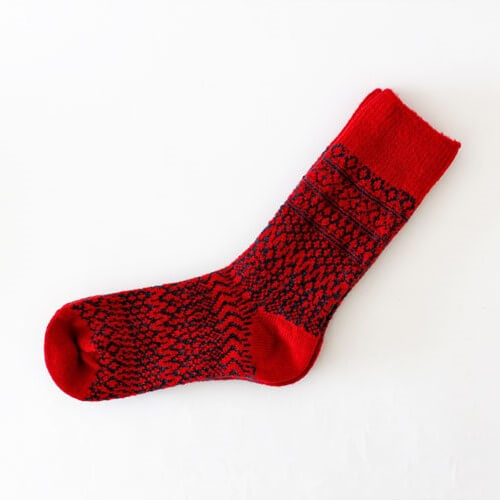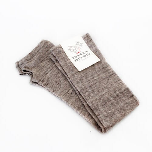 NISHIGUCHI KUTSUSHITA は、1950年から靴下づくりをつづける日本のファクトリー。“はくひとおもい”をキャッチコピーに、素材やデザイン、編み方や価格に至るまで、「履く人のことを考えた比類ないものづくり」に徹している丁寧な靴下作りをされています。手に取ったときの、ざっくりとした風合いが心地よく、足元も気持ちも温めてくれる靴下です。