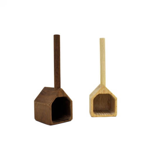 こちらの『コーヒーメジャーハウス』は、10年ほど前に、京都の「恵文社」さんで出会い、愛用されています。経年変化を遂げ、良い色合いに変化しているウォルナットのコーヒーメジャーハウス。「ほかにも木製のコーヒーメジャーは持っているんですけど、こればかり使用してしまいます。立てて収納できるのも良いところ。」