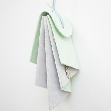 開店当初から働いているスタッフTさんですが、しっかりしていて頼りがいのある反面、少々おっちょこちょいな面もあり、当店スタッフからも親しまれています。そんなTさんが愛用しているのは、優しいミントカラーが印象的な【irose】の『オーロラキーホルダー』。一枚の革を縫製せずに折り込んで組み立てたシンプルな構造のキーホルダーです。