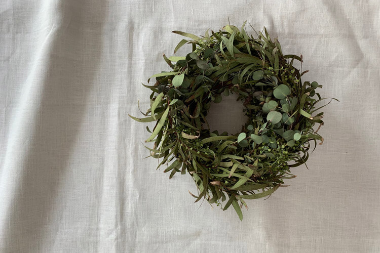 国産のユーカリや野草のナズナを使ってシンプルなグリンリースを製作します。