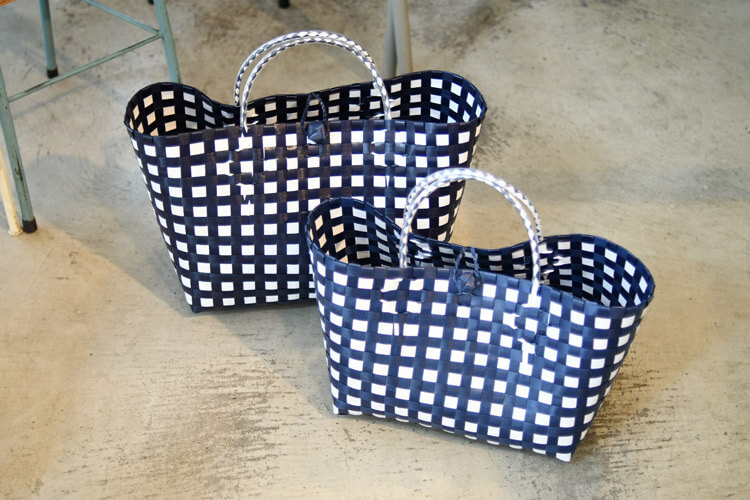 その他、天然素材のかごや、台湾のプラテープを編んだショッピングバッグ、