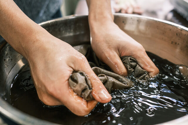 カフェで提供される珈琲の出がらしから、染料を抽出して染め上げます。