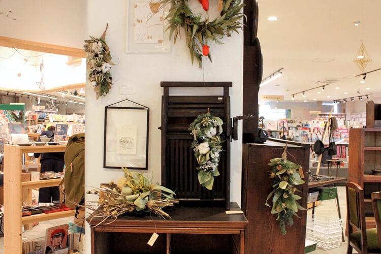 人気のスワッグの他、今回は多肉植物、観葉植物の寄せ植えもご用意いただいています。