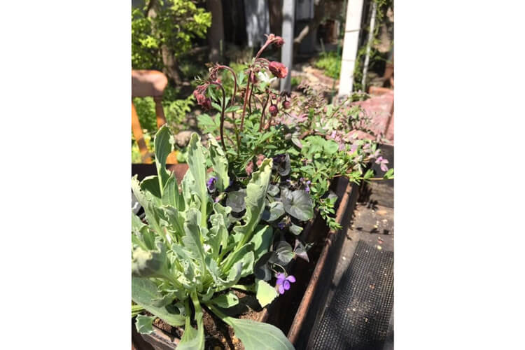 ご用意いただく素焼きの器に、4〜5種類の植物を寄せ植えしていただきます。
