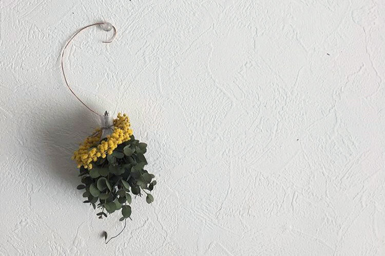 ユーカリとミモザを使った、小さなスワッグづくり。