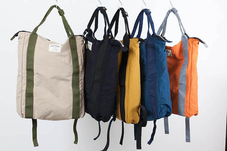 撥水加工を加えた軽量のタッサーナイロンを使用した、ユニセックスなカジュアルライン、